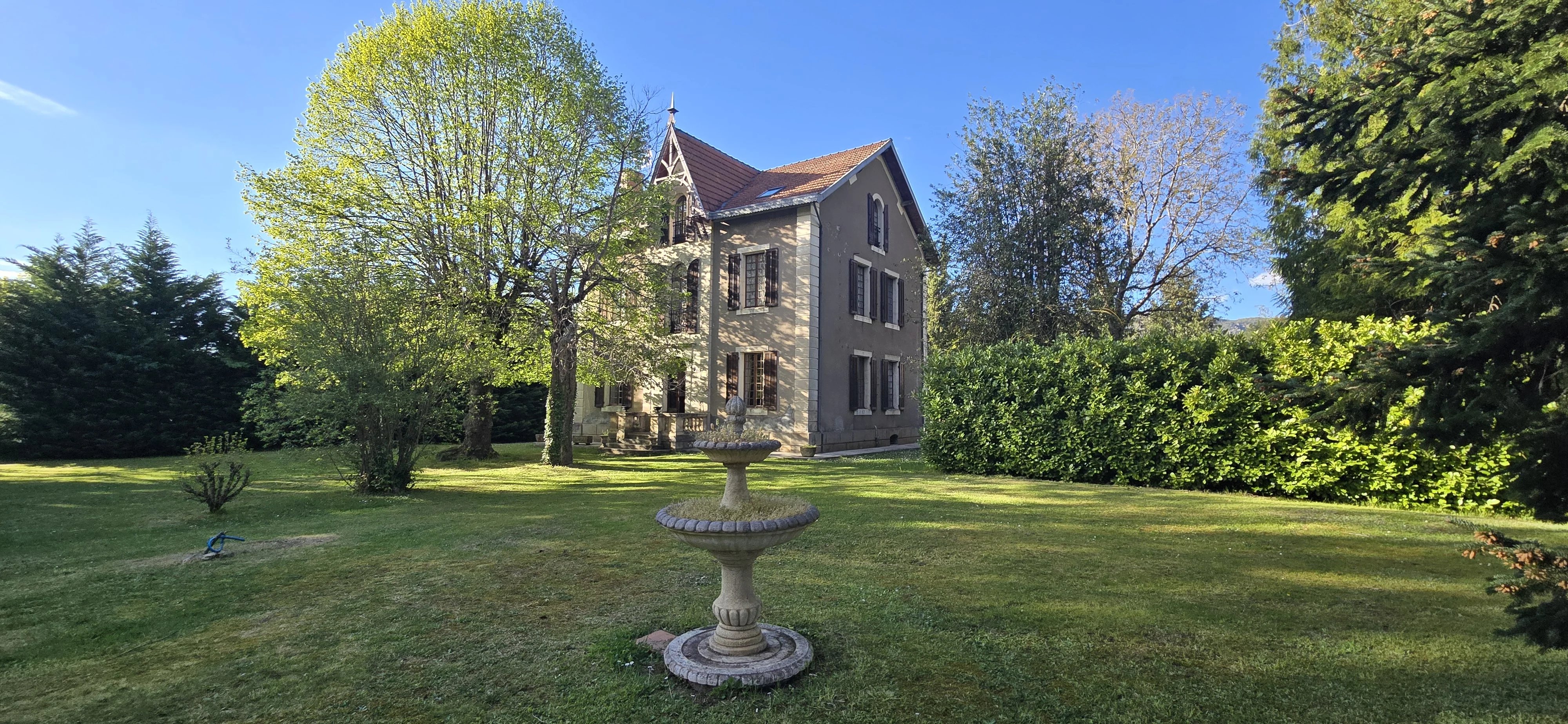 Au cœur d’un parc de plus de 3 000 m², découvrez cette élégante maison de maître au charme authentique, offrant de beaux volumes et une vue sur les montagnes.